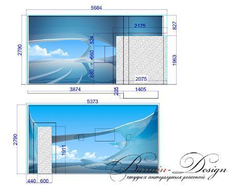 Для сложных и крупноформатных объектов создание чертежей с разбивкой на зоны печати. Обязательно профессиональные замеры и фотографирование участков стен!