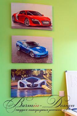 Интерьер детской оформлен яркими постерами на холсте без багета с французской натяжкой на подрамник.