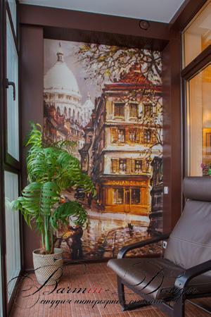 Балконная часть квартиры была выполнена с использованием оригинального изображения с видами Парижа.